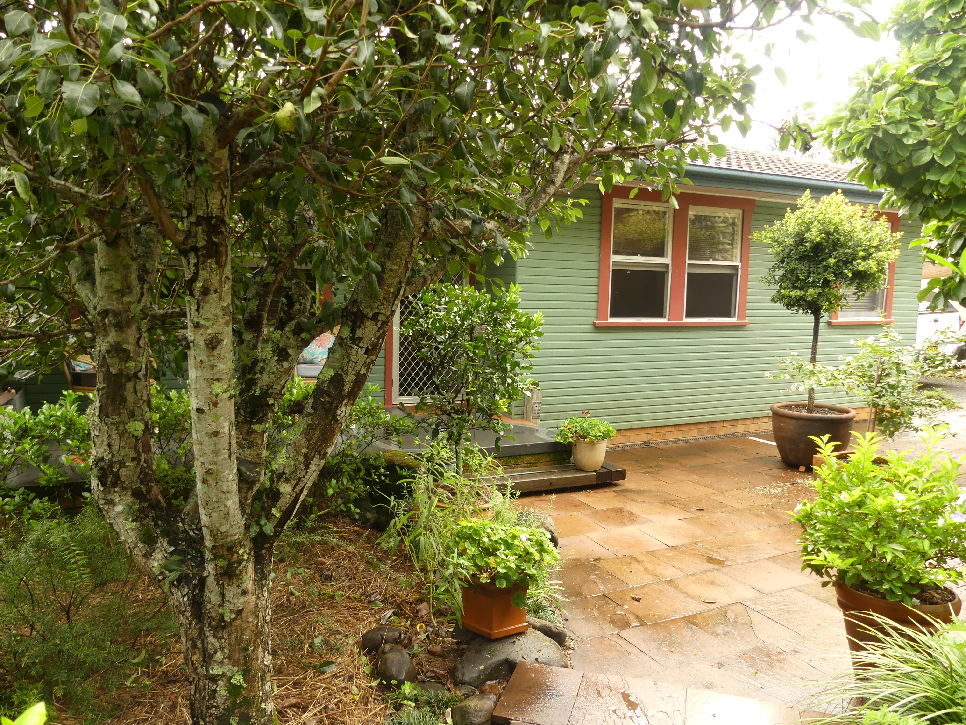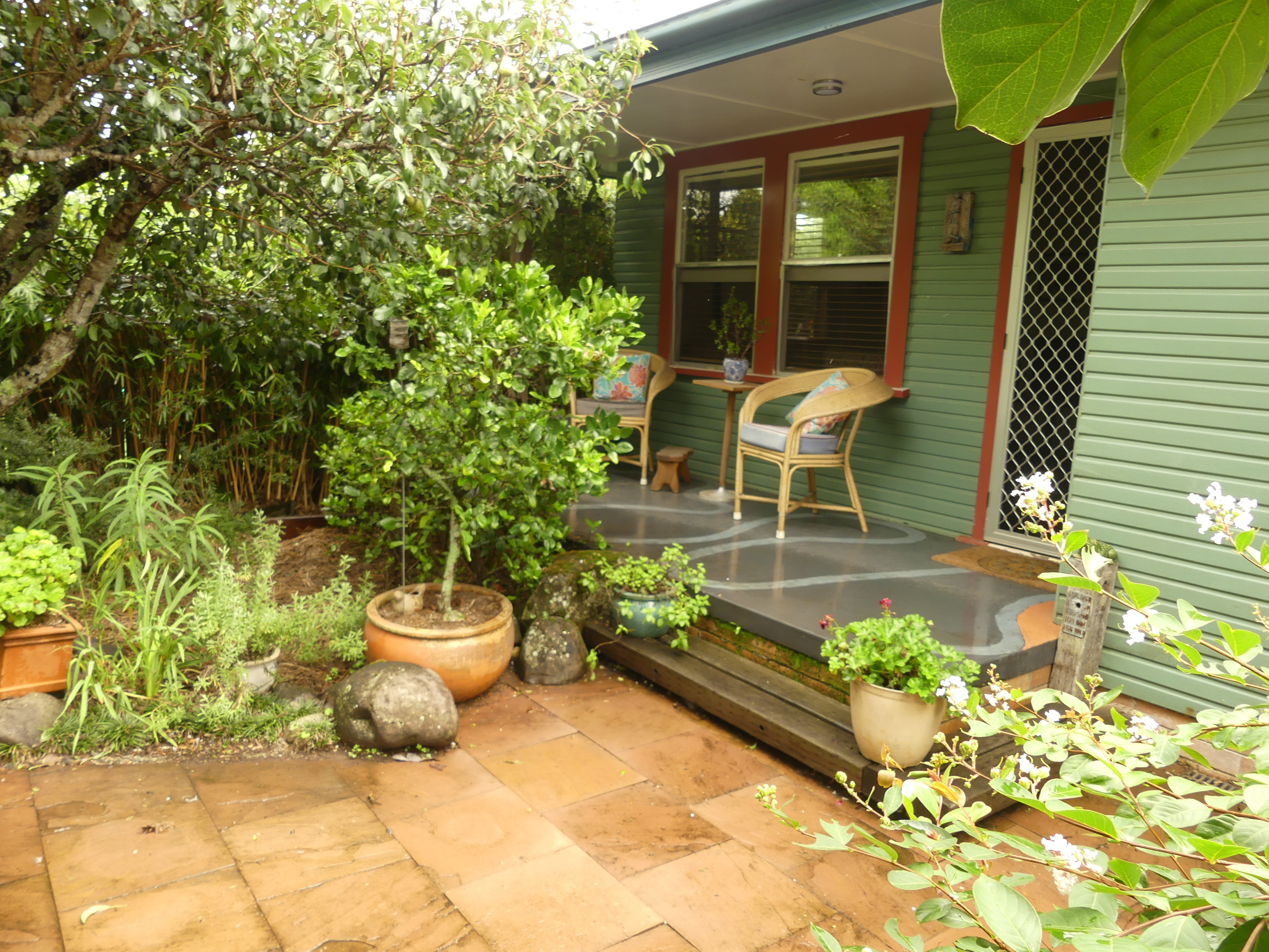 • Private courtyard area at front of house. Great size back yard with established gardens