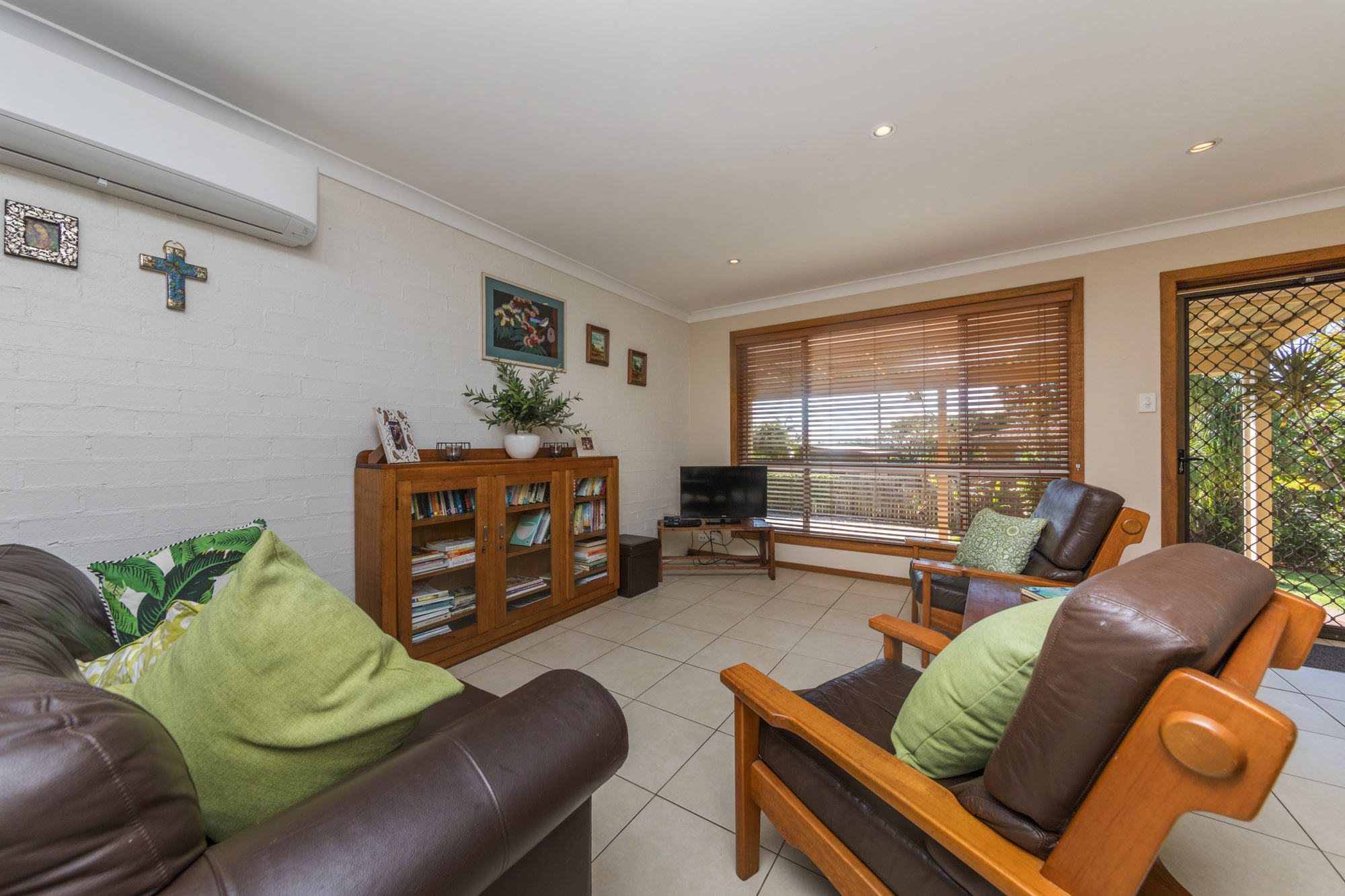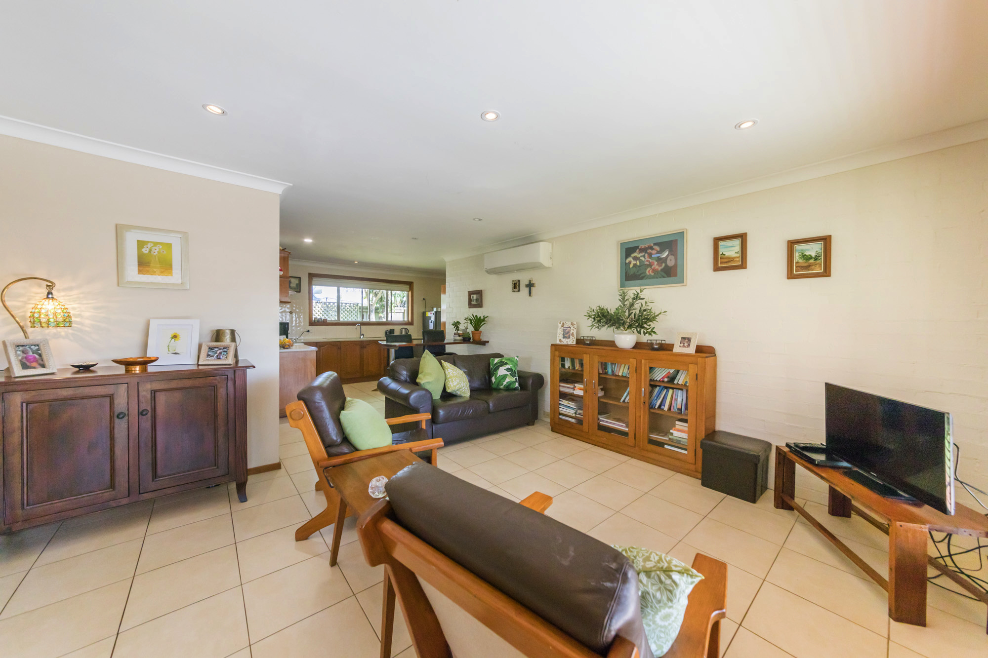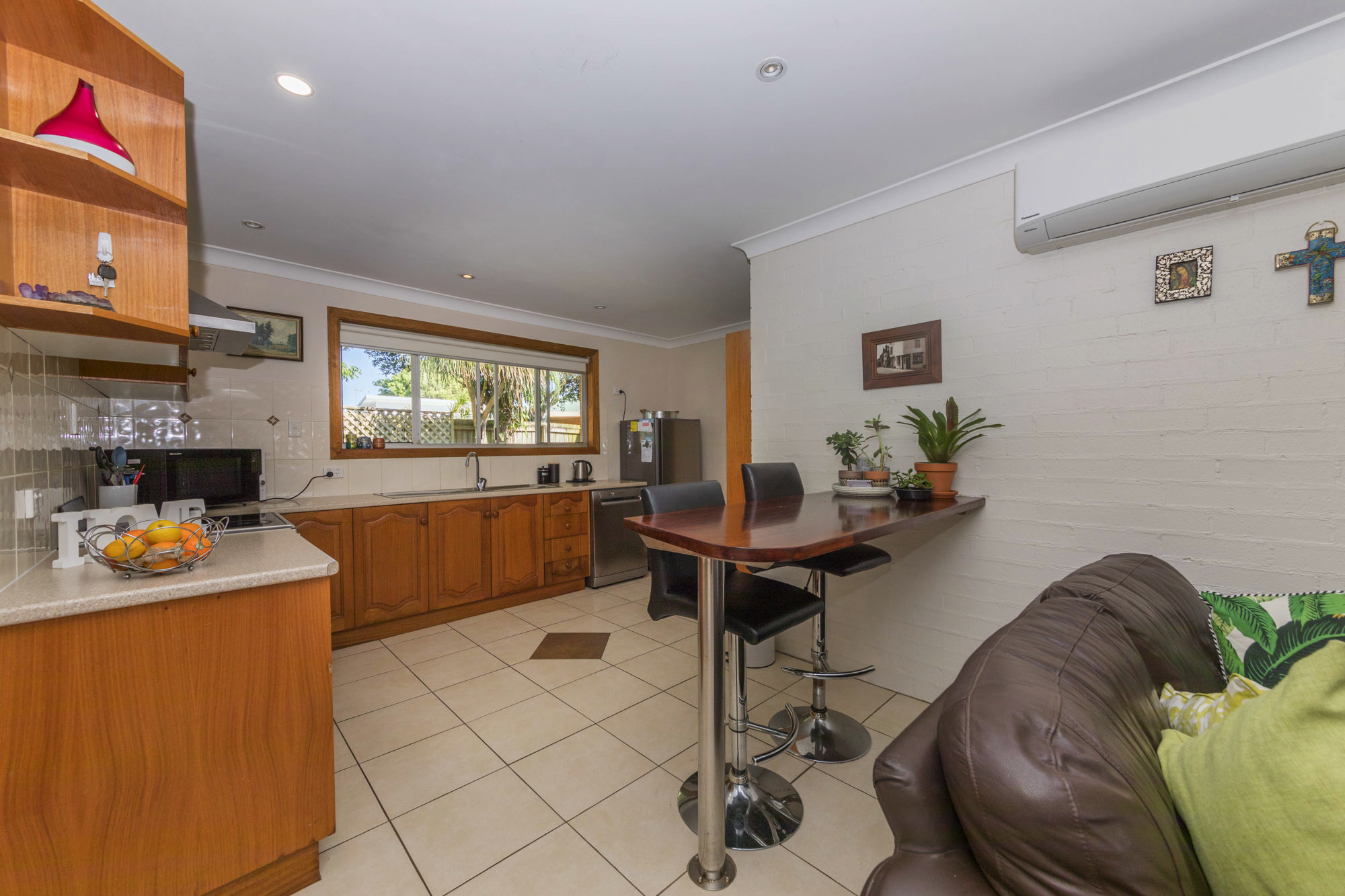 Featuring a spacious air-conditioned living area, tiled throughout most of the unit and enjoys an open light and bright feeling. There is a good sized kitchen with ample storage, modern electricals and a dishwasher, separate laundry and renovated modern white bathroom. There are two good sized bedrooms with built in robes and fans and a third room that was originally a garage that has been converted to a third bedroom, or alternatively could be used as a second living room, study or craft room, or turned back to a garage.